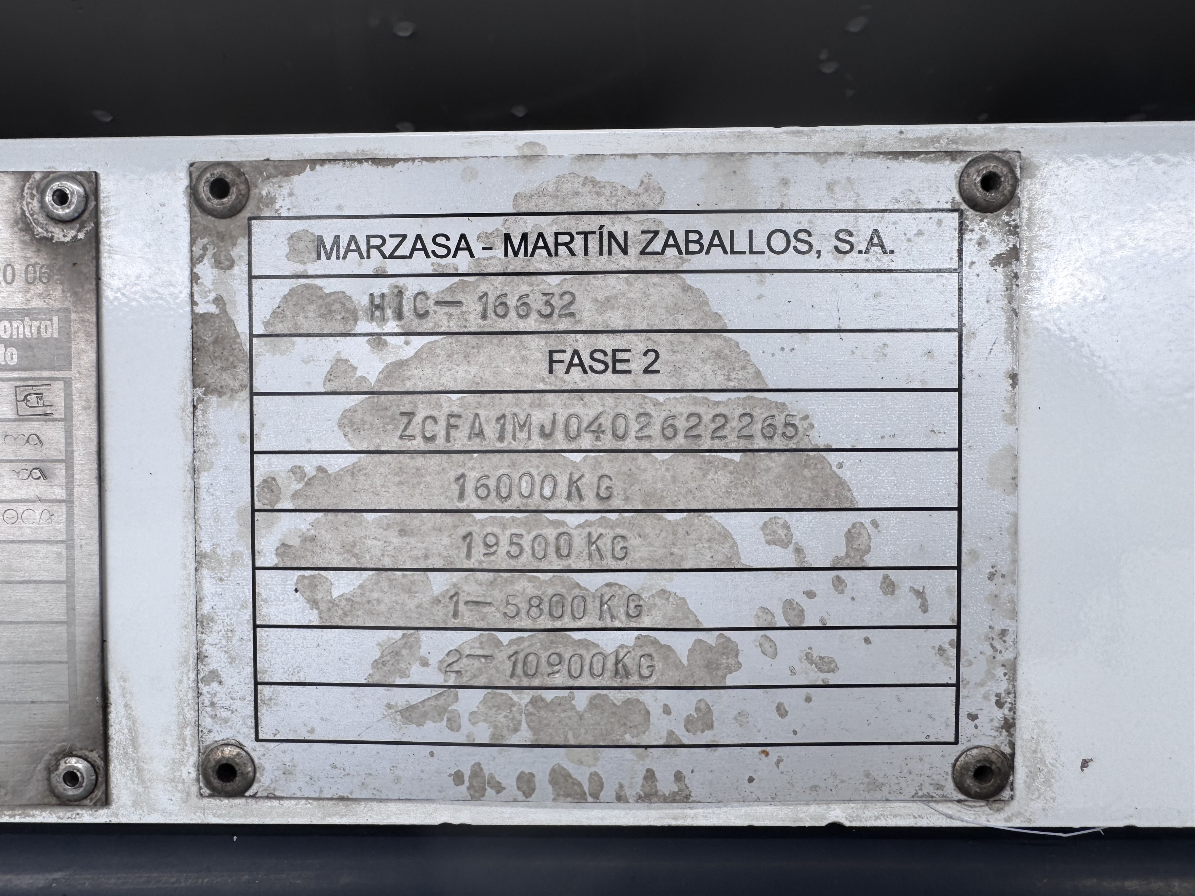 | Peso máximo (Kg) | 16000 |