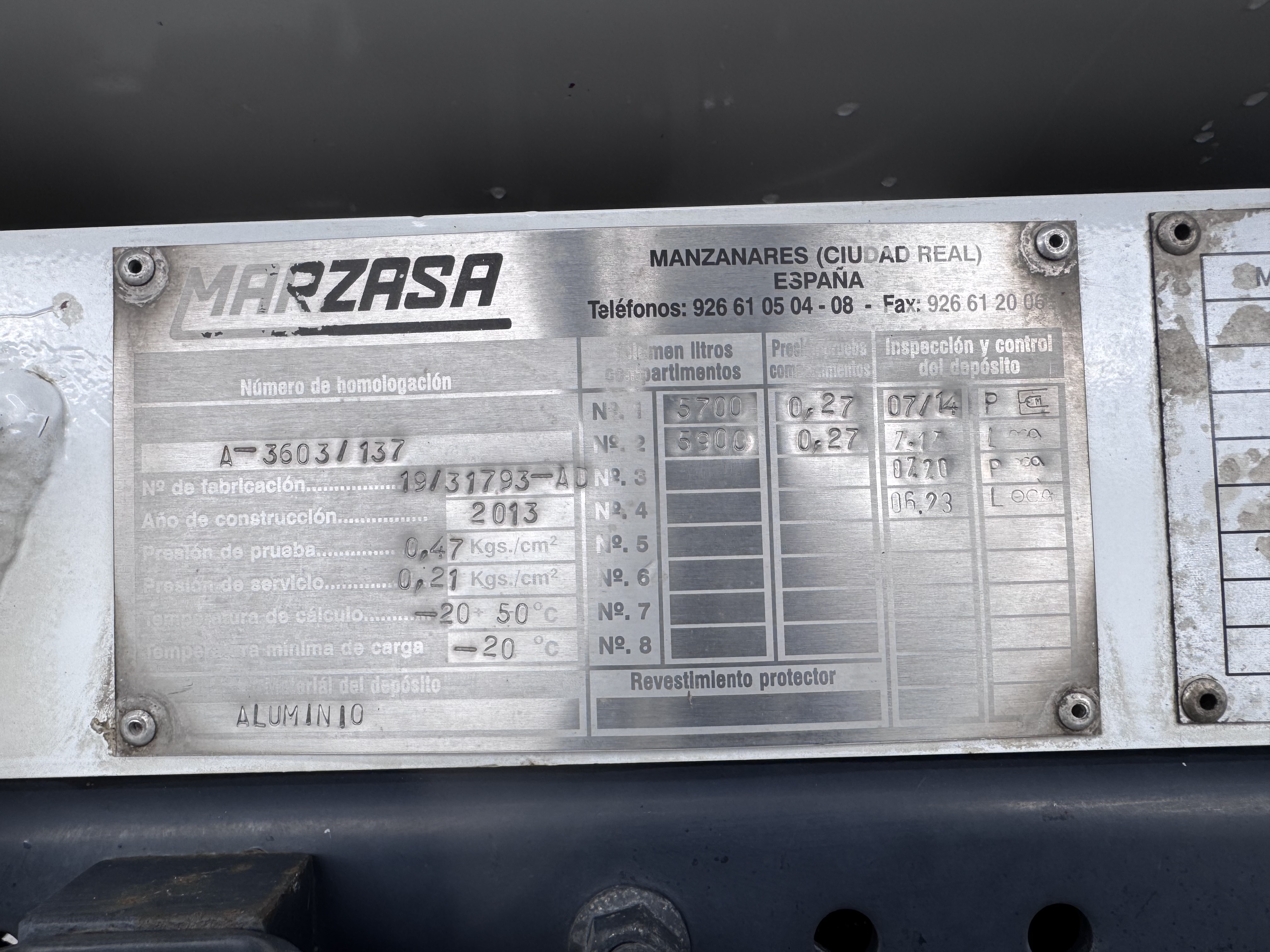 | Tara (Kg) | 6255 |
