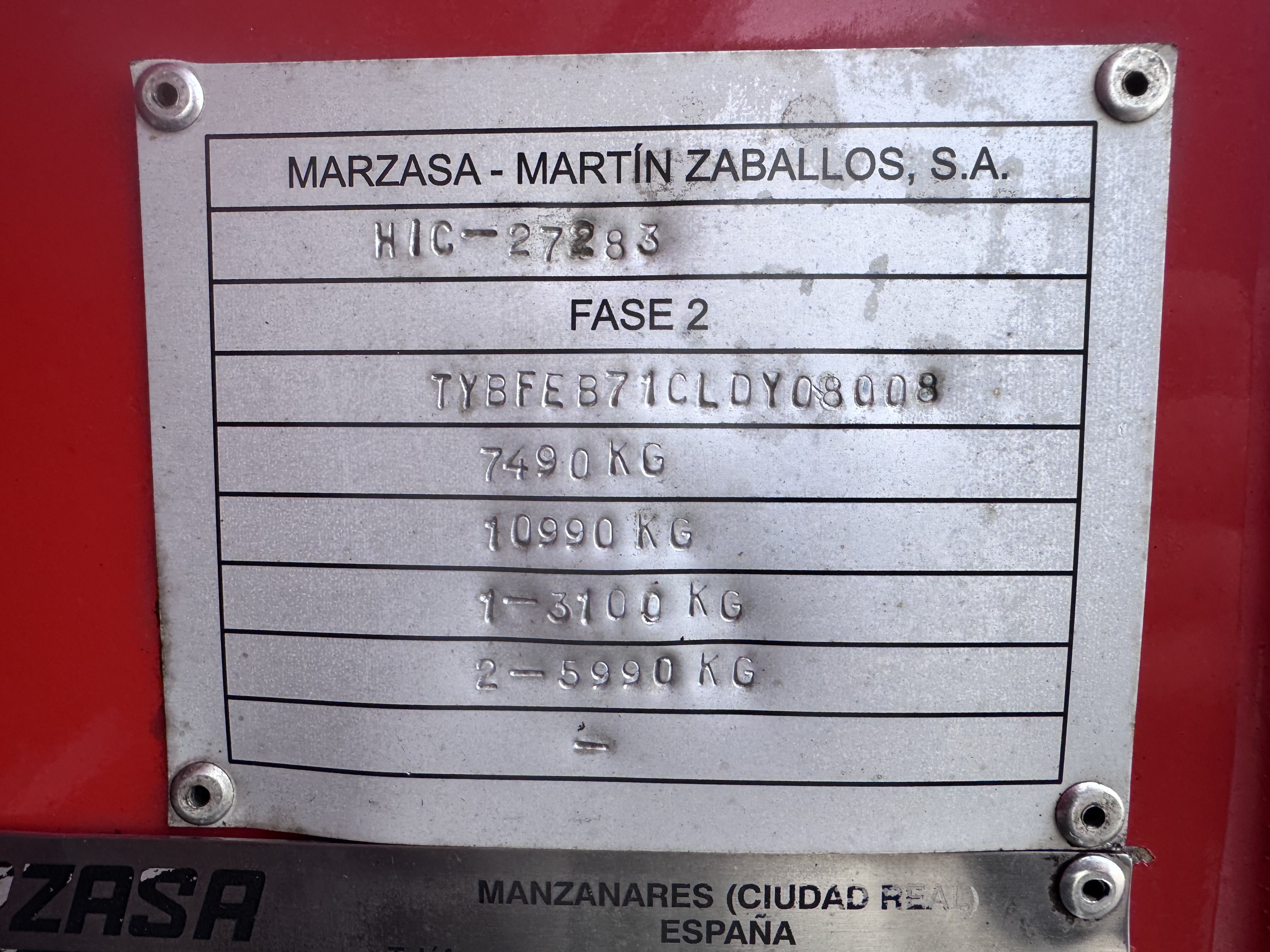 | Peso máximo (Kg) | 7490 |